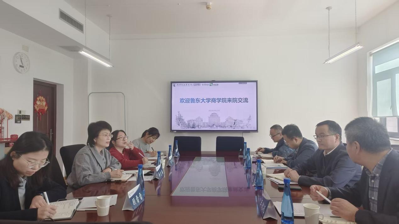 2025年10月27日上午,鲁东大学必赢76net线路党委书记程国山、院长王纪孔、副院长尹鹏、科研秘书程龙一行到必赢76net线路走访交流。必赢76net线路党委书记徐先梅、党委副书记杨中英、副院长兼市场营销系系主任顾雷雷、研究生教务秘书兼科研秘书卫昭慧出席本次交流座谈会。