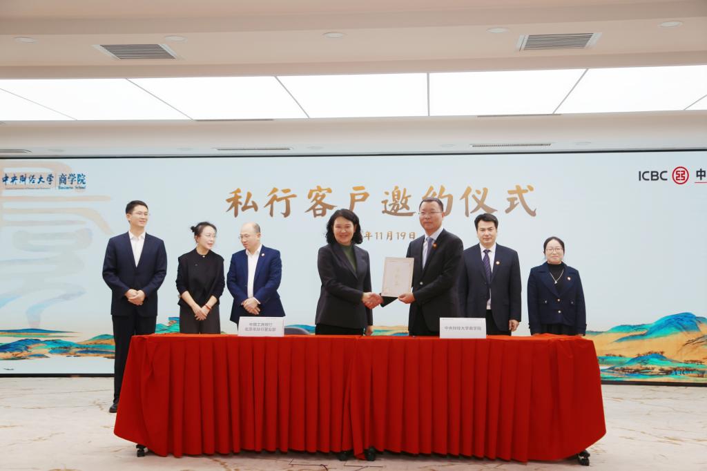 合作伊始,中国工商银行北京市分行营业部党委书记、总经理潘端升对中财师生的到来表示热烈欢迎,并指出双方拥有坚实的合作基础,期待以此次签约为契机,持续推动合作迈向新高度。分行私人银行中心总经理陈娇在祝贺双方的同时,介绍了私人银行的业务发展,展望了未来在高端人才服务与财富管理研究领域的合作前景。分行人力资源部副总经理安文才作为中财校友,以饱含深情的言语表达了对母校的感激,他回顾了工行北分与中财在人才培养上源远流长的合作,并期待通过此次携手,为实现金融强国战略贡献更大力量。必赢76net线路院长兼MBA教育中心主任林嵩教授在致辞中感谢工行北分的长期支持,他表示,与金融体系中的“佼佼者”深化合作,必将能充分发挥中财“财经黄埔”的学术优势,共同在人才培养、科学研究与社会服务方面结出硕果。