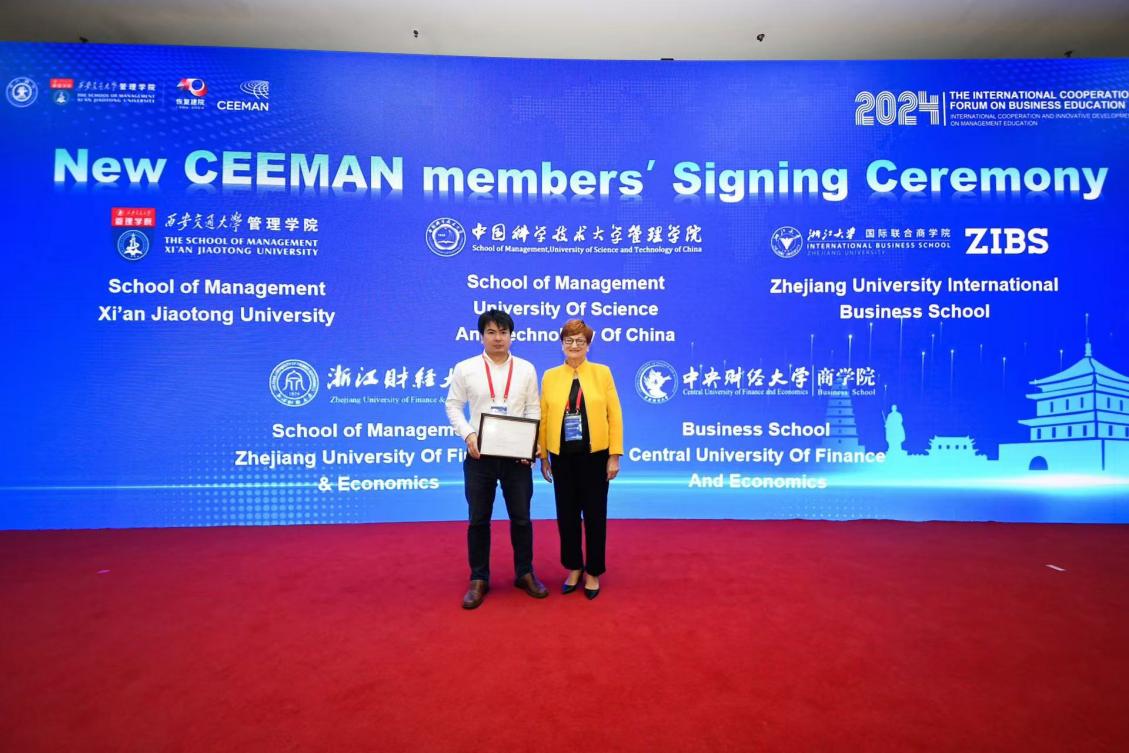 Professor Lin Song Receives the CEEMAN Membership Certificate on Behalf of CUFE Business School