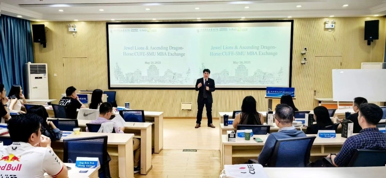 On the morning of May 26, the welcome ceremony kicked off with the theme of "Jewel Lions & Ascending Dragon Horses". In his welcome speech, Professor Lin Song, Dean of CUFE Business School and Director of the MBA Education Center, stated that this exchange was not only a transfer of knowledge but also a dialogue of diverse business wisdom. CUFE MBA has always been committed to cultivating innovative leaders with a global perspective and financial expertise, and he expressed the expectation to explore new management paradigms in the digital economy era together with SMU teachers and students.